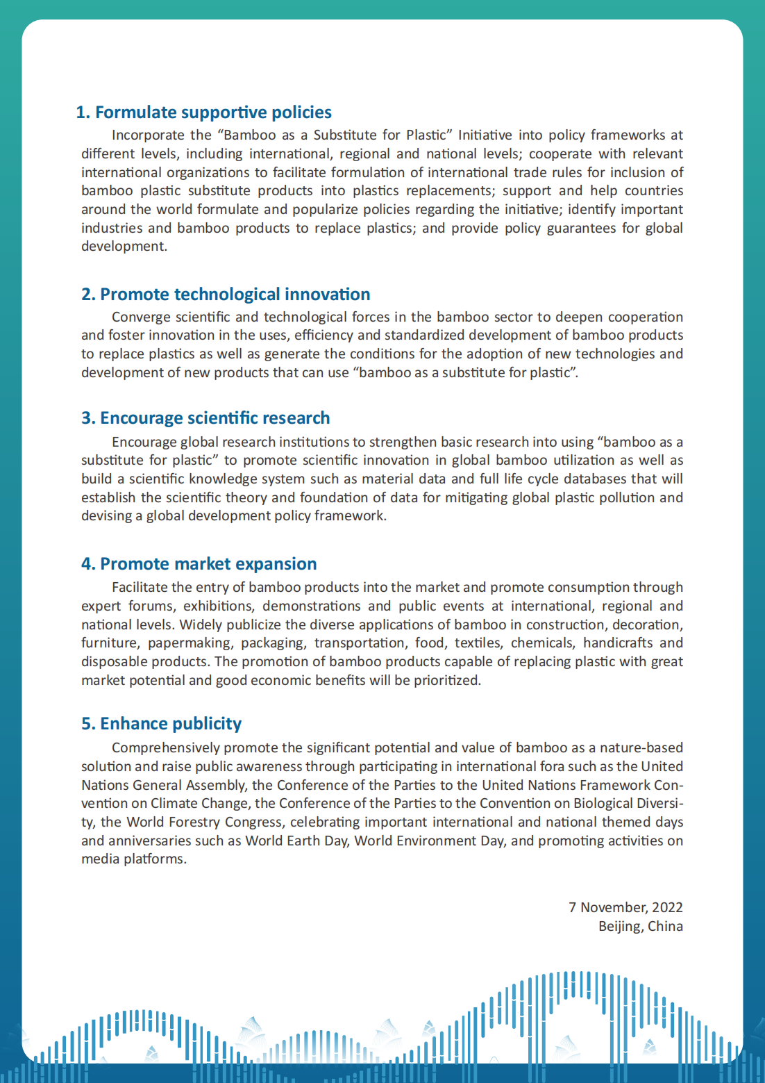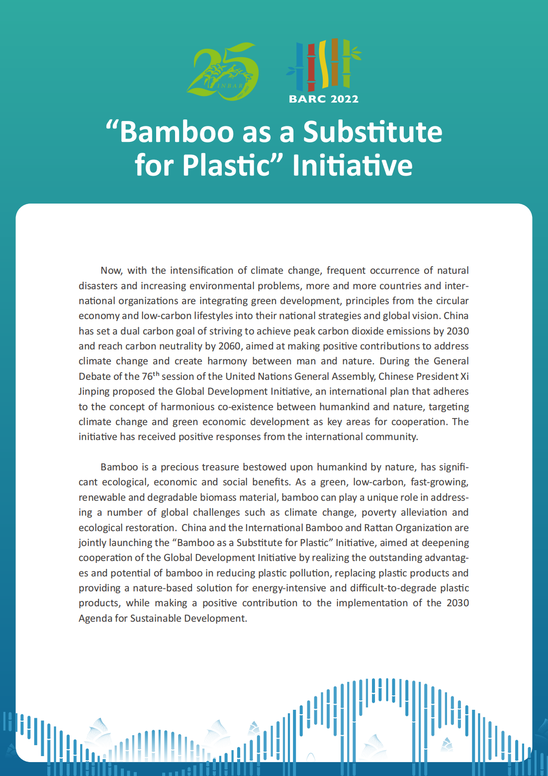 Reducing plastic pollution is urgent. More than 140 countries around the world have specific policies to ban plastic products to plastic products. As a green, low-carbon,biodegradable biomass material,bamboo had great potential in this field.