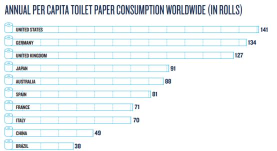 Q: Is it true that Americans use three rolls of toilet paper a week?